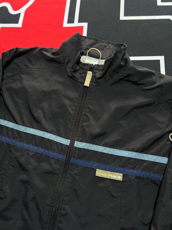 Campera rompeviento Nike vintage. Forrada con algodón, tiene 2 bolsillos frontales y otro en el brazo