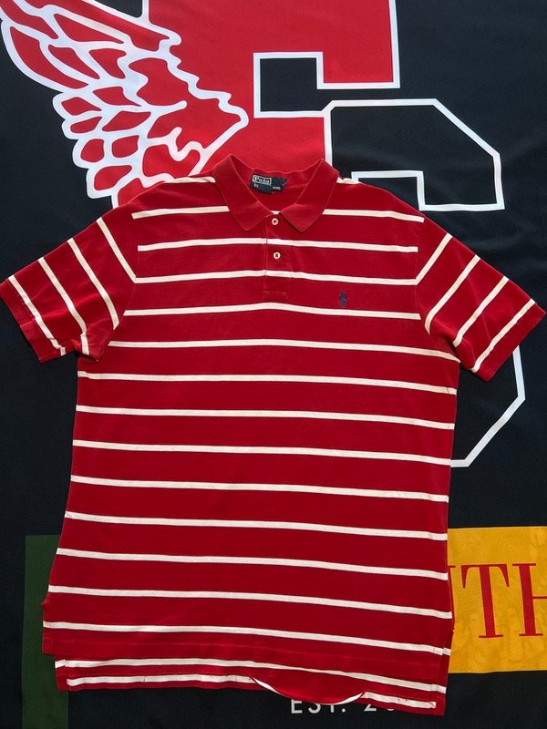 Chomba Polo Ralph Lauren bicolor (rojo y blanco), de pique.